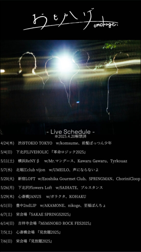 2023年11月に結成した神奈川県横浜市発の4ピースバンド「おもかげ」