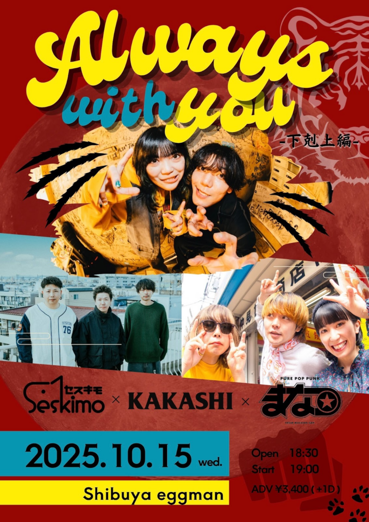 まなつのいたやボーイ君とKAKASHIの中屋敷さんとshibuya eggmanの直人さんと喋ってた時に「このメンツでやりたいです!!!」と言ってまなつの活休を経て1年越しに実現出来ました。私がバンドを始めるきっかけになったまなつと、学生時代から聴いていたKAKASHIと大事な場所であるeggmanで対バンが出来るなんてぶちかますしかないでしょ!と思ってかなり気合が入っています。