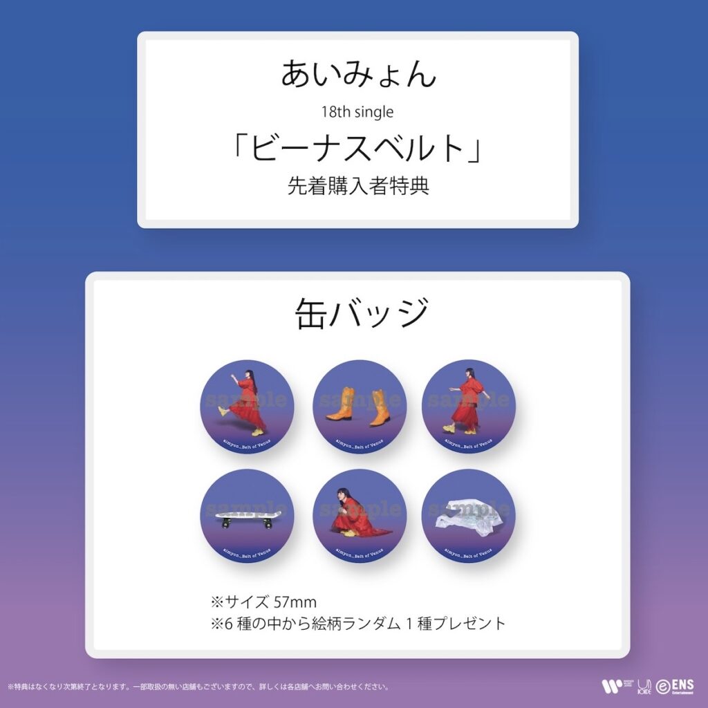 今回の「ビーナスベルト」ジャケット写真の公開にあわせて、先着購入者特典となる”オリジナル缶バッジ”のデザインも公開。今作のジャケット写真のモチーフが散りばめられた印象的な6種のデザインとなっている。ぜひリリースを楽しみにして欲しい。