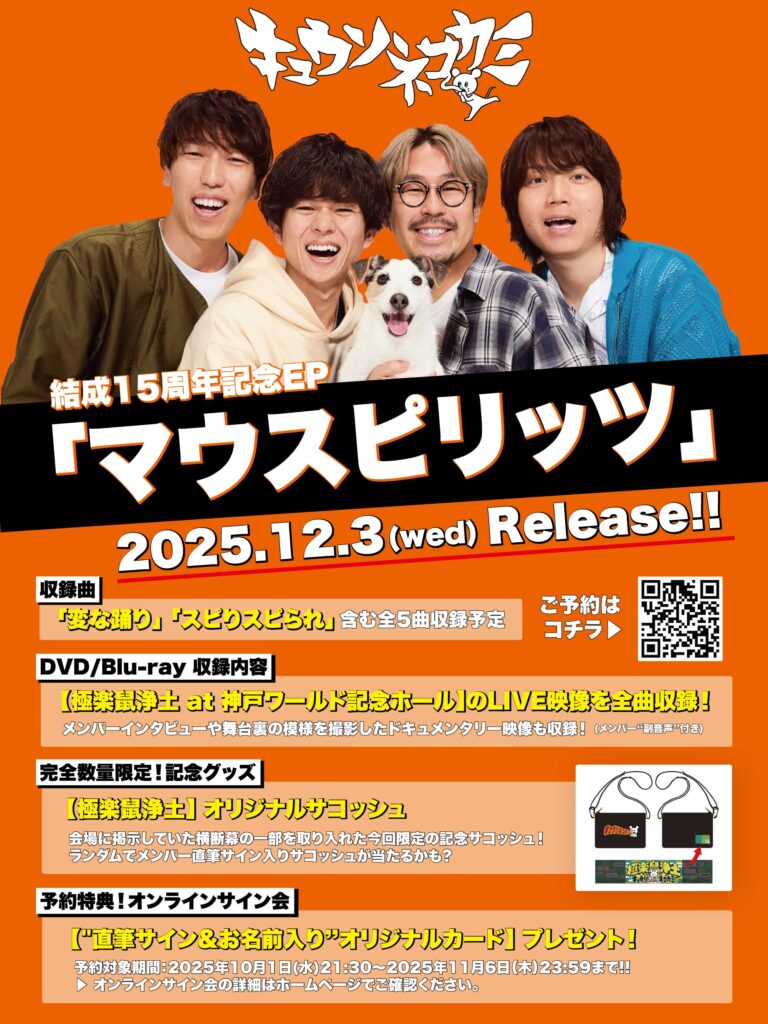 キュウソネコカミ 2025年12月3日(水)発売 結成15周年記念EP『マウスピリッツ』の発売を記念し、オンラインサイン会が決定!