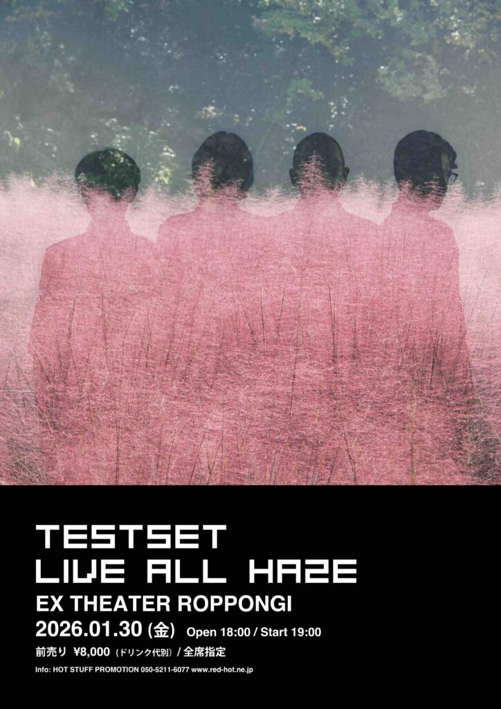 さらに、TESTSETは2026年1月30日(金)EX THEATER ROPPONGIにて開催されるリリースワンマンライブ「LIVE ALL HAZE」を発表。本日よりチケットオフィシャル先行受付を開始。