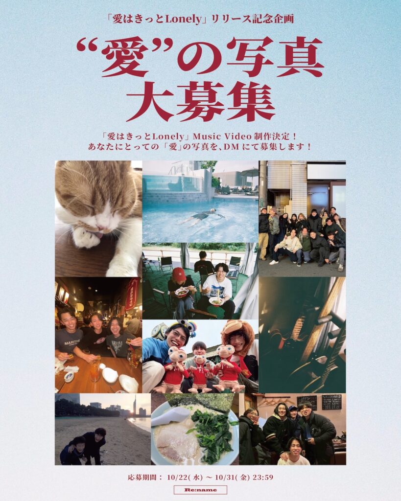 「恋、友情、家族、ペット・・・何でもOK!カメラもスマホも問いません!あなたにとっての“愛”を教えてください」というメッセージとともにバンドの公式Instagram、公式XのDMで写真の募集を開始した。