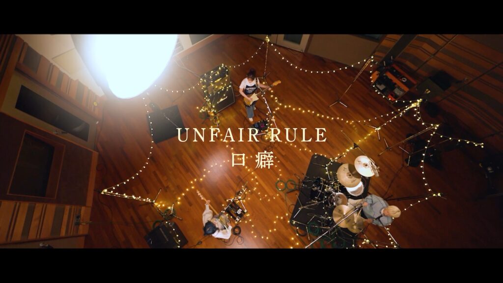 「口癖」は、EPの3曲目に収録されている楽曲で、既に今月から先行配信されている、伝えきれない本音と募る想いが交差するUNFAIR RULEらしい壮麗なロックバラード。10/8に行われたスタジオライブ生配信でも初披露され話題となっていた楽曲だ。ミュージックビデオもスタジオライブ同日に撮影されており、楽曲の世界観を届けてくれる作品となっている。監督はスタジオライブのディレクターも務めた木本健太 (A-10 inc.)。