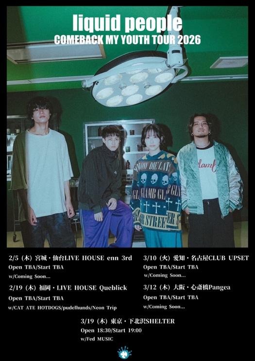 東京は町田にて結成され、現在は下北沢のライブハウスを中心に活動するliquid people(通称リキピ)。彼らの2026年の幕開けに相応しい、唯一無二のリキピ節全開のエモーショナル&テクニカル・オルタナティヴロックナンバー。歌詞にも、過去を振り返る幻想と今現在の前向きな姿勢、そして意欲がみなぎるこの楽曲”he”を皮切りに2026年、彼らの快進撃が始まる。