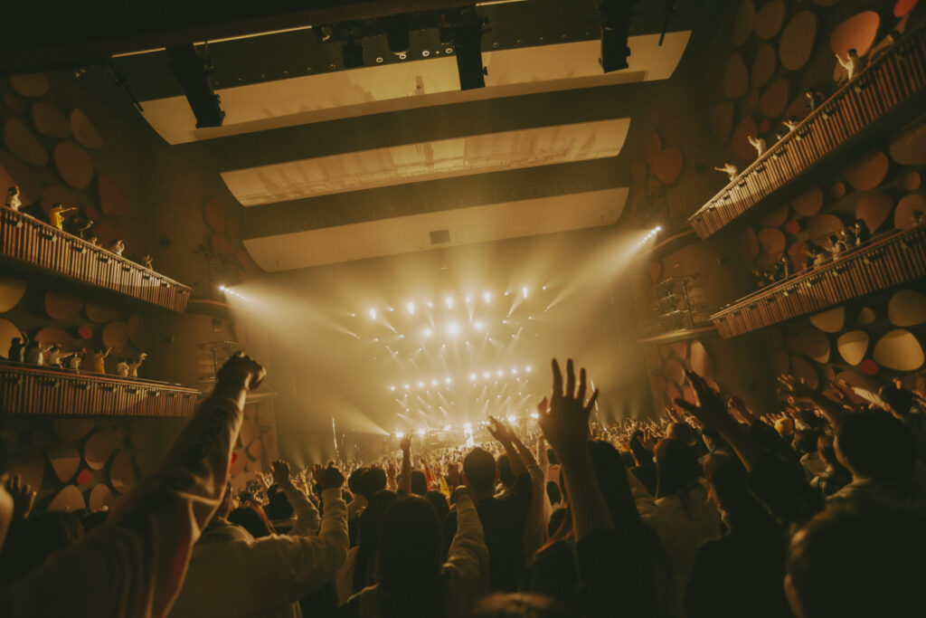 最初は椅子に座ってじっくりと聴いていたオーディエンスも、続く「初恋が泣いている」から徐々に立って体を揺らし始め、3曲目の「マリーゴールド」では総立ちになり、サビでは一斉に手が振られて、早くも場内には一体感が生まれていた。