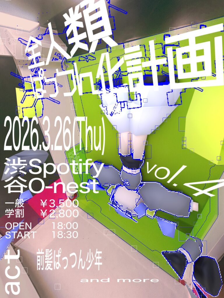 神奈川県藤沢発、平均年齢19歳、各所で注目のニューカマーとして取り上げられている前髪ぱっつん少年。本日行われたVo.3に続き、自主企画ライブ「全人類ぱっつん化計画」のVol.4が、3月26日(木)に開催となることが発表された。