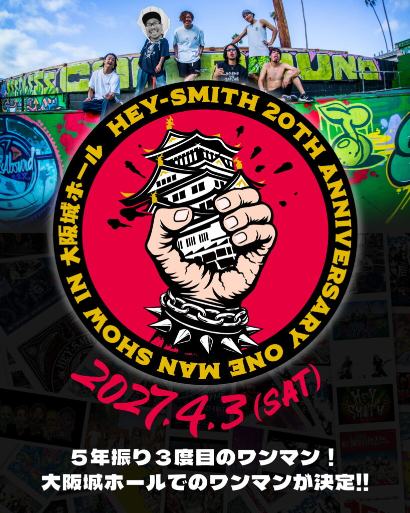 大阪城ホールでのワンマンは、『HEY-SMITH 20th Anniversary ONE MAN SHOW』として2027年4月3日に開催。2022年以来の約5年振り、バンド史上3回目のワンマンライブとなる。