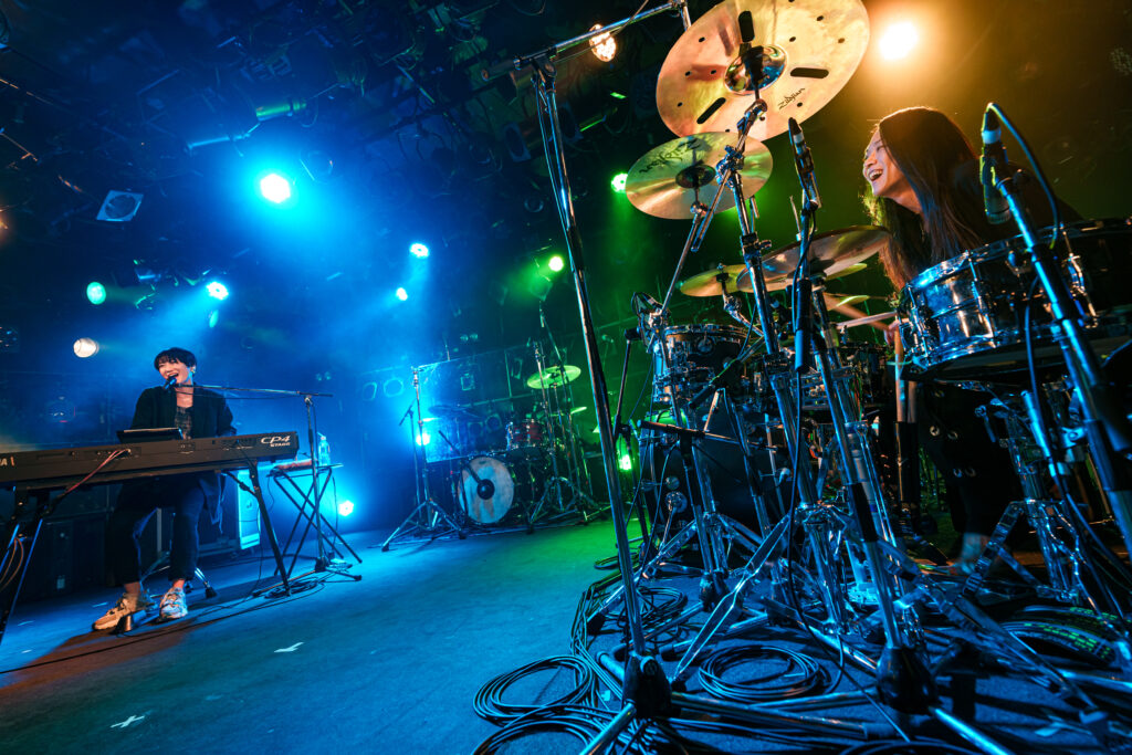 さらに最新アルバム「銀化」から「風、花、ノイズ、街」julep-ment flight」を演奏。ピアノとドラムによる研ぎ澄まされたサウンド、衝動と普遍性を内包した歌によってフロアを埋めた観客を惹きつけていく。