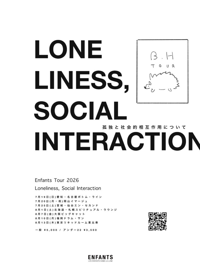そのアルバムを引っ提げたワンマンツアーを、タイトルを「Loneliness, Social Interaction」と題し、7月から8月に全国7箇所で行うことが発表された。