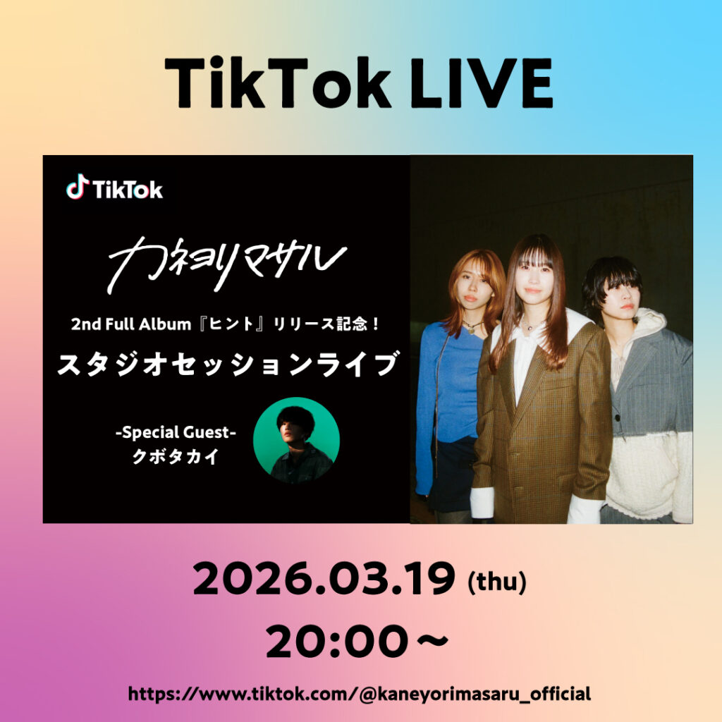カネヨリマサル 2nd Full Album 「ヒント」 発売記念!3月19日(木)にスタジオセッションライブをTikTok LIVEにて生配信決定!クボタカイのゲスト出演も決定!