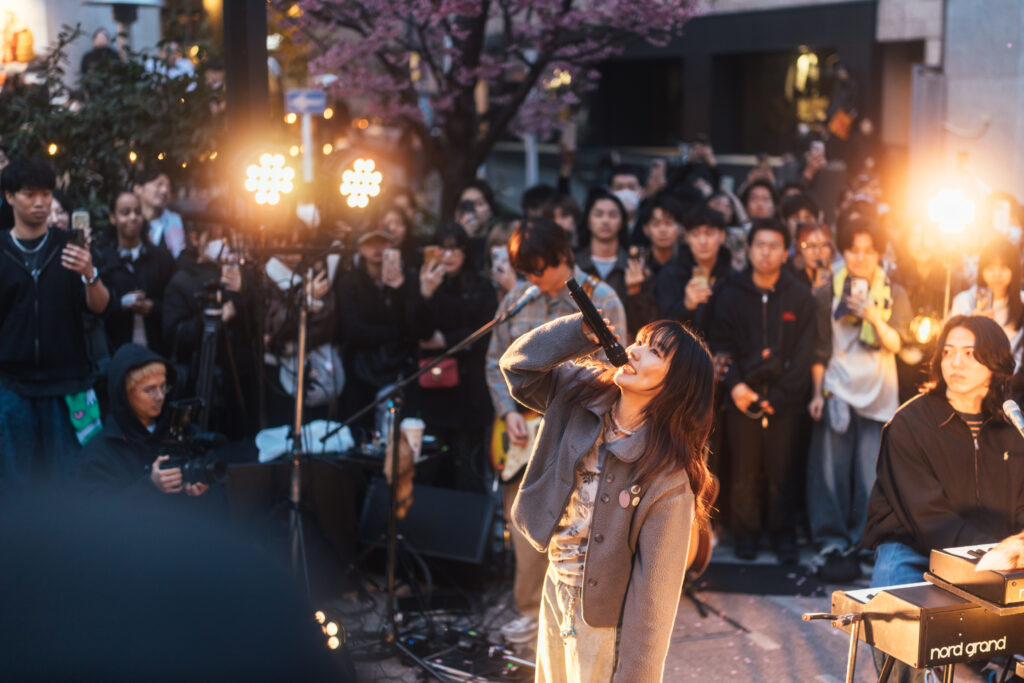 「それはひとえに、いつもサポートしてくれる周りの方々と、自分の音楽を愛してくれている皆さんのおかげで、ここまでやってこれたんだなと思っております。今日もこうして集まってくれて、本当にありがとうございます」。そう言って深くお辞儀をすると、会場から大きな拍手が起きた。「本当に感謝しかない、感謝しかないよ。他に何を言えるんだろうって思う。もっと長くやりたいけど、もう1曲だけやって終わります。これまで言いたいことを歌に変えてきたので、最後はこの曲をみんなに届けられたらなって。家族や友達、そしてみんなが私にとっての“光”だなと思っています」。そうして弾き語りで紡いだラストソングは「Twinkle Little Star」。〈トゥインクルリトルスター 夜空の星を頼りに今日も歩くよ〉辺り一帯がゆるやかに色を沈めていく。〈どんな暗闇も時代も この世の灯りを消せやしないだろう〉向こうにそびえ立つビルの、あの窓この窓に明かりが一つ、また一つと灯っていく。その光こそが、都会の星空なのだと思った。〈トゥインクルスター 光れよ〉にしなの歌は、この夜の渋谷に確かに生まれた、ひとつの光だった──。