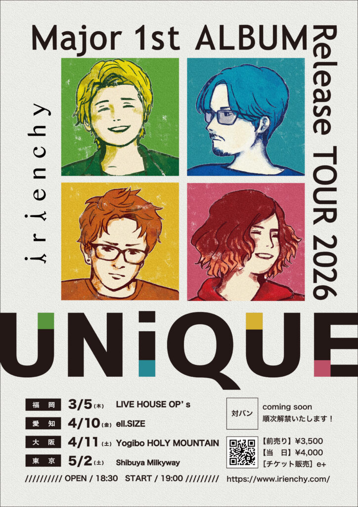 「irienchy Major 1st ALBUM Release TOUR 2026 “UNiQUE”」開催決定!