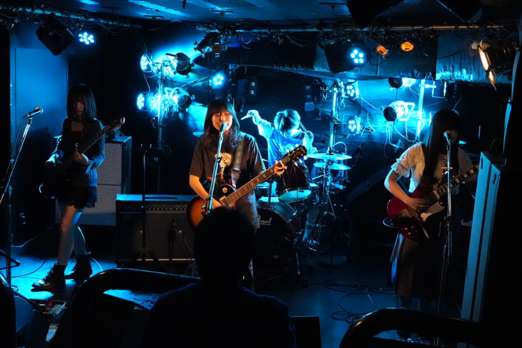 リズム隊の安定感も抜群に上手く、ナナ ミ(Dr)のドラムが織りなすタイトなビートに、りなべる(Ba)のベースが温度を加える。そこにくみ(Gt)のギターソロが輝き、繊細かつ大胆なフレーズがオルタナティブロックのフィールドにもしっくり収まりそうなバランス感覚を見せつける。