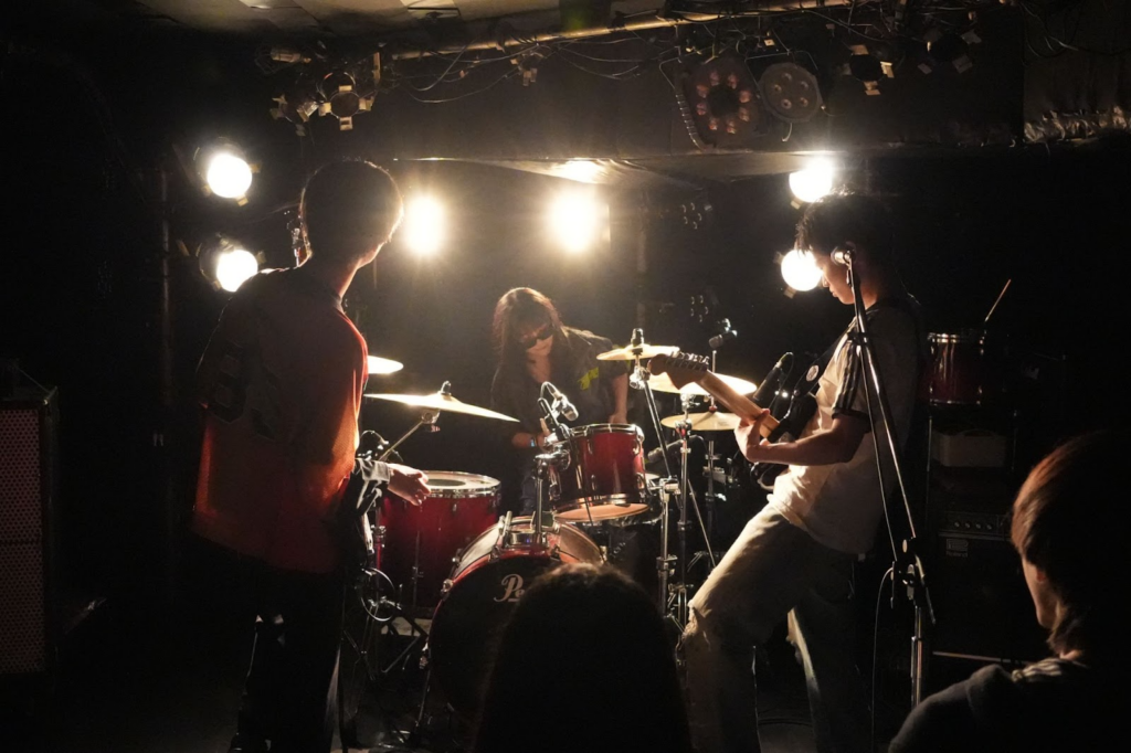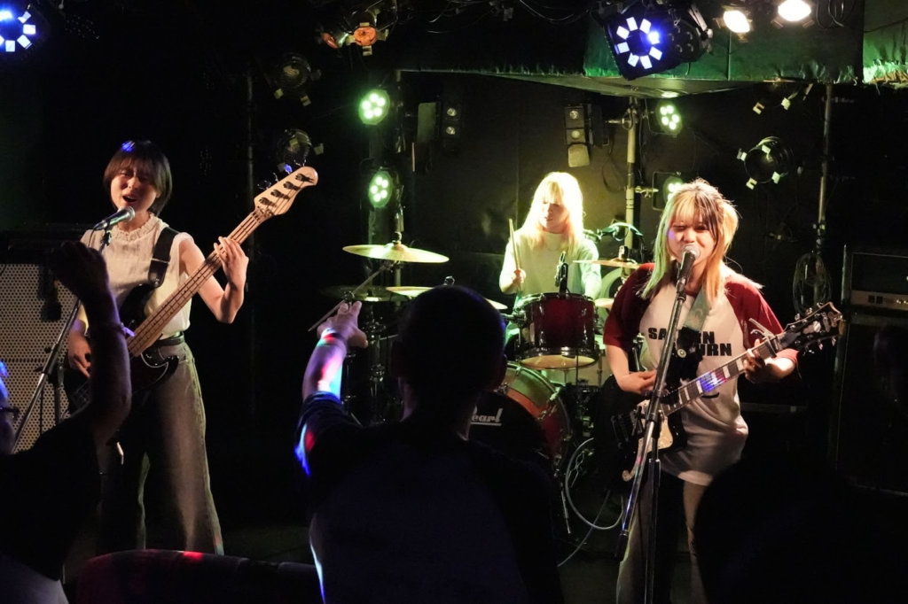 楓(Ba)の響かすベースの低音はどんなに展開が激しくても軸を失わない。うねるリズムが常にバンドの中心にあり、Risa(Dr)のドラムビートと絡み合い、地を踏みしめるような重みを生み出していた。