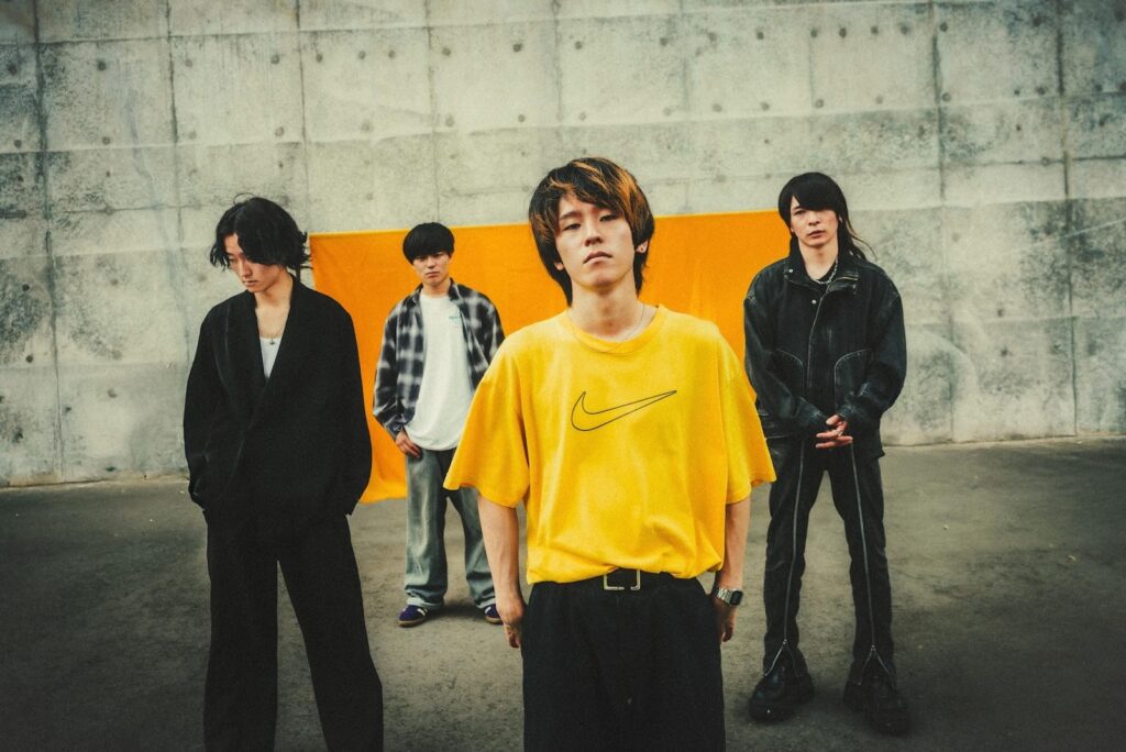 颯(Dr)も楽しさが溢れ出した様子で早速立ち上がっていた。その勢いのまま『遥か鳥は大空を征く』へ。ゴリゴリと岩を砕くようなmuku(Ba)と颯のビートと曲の合わせたスカイブルーの照明を“始まりの合図”に解放感のある楽曲を展開し、天井知らずの空を創る。それは力強さだけでなく、クールに色気のあるギターを足していくSougo(Gt)のプレイもあってこそだと分かり、見惚れてしまった。