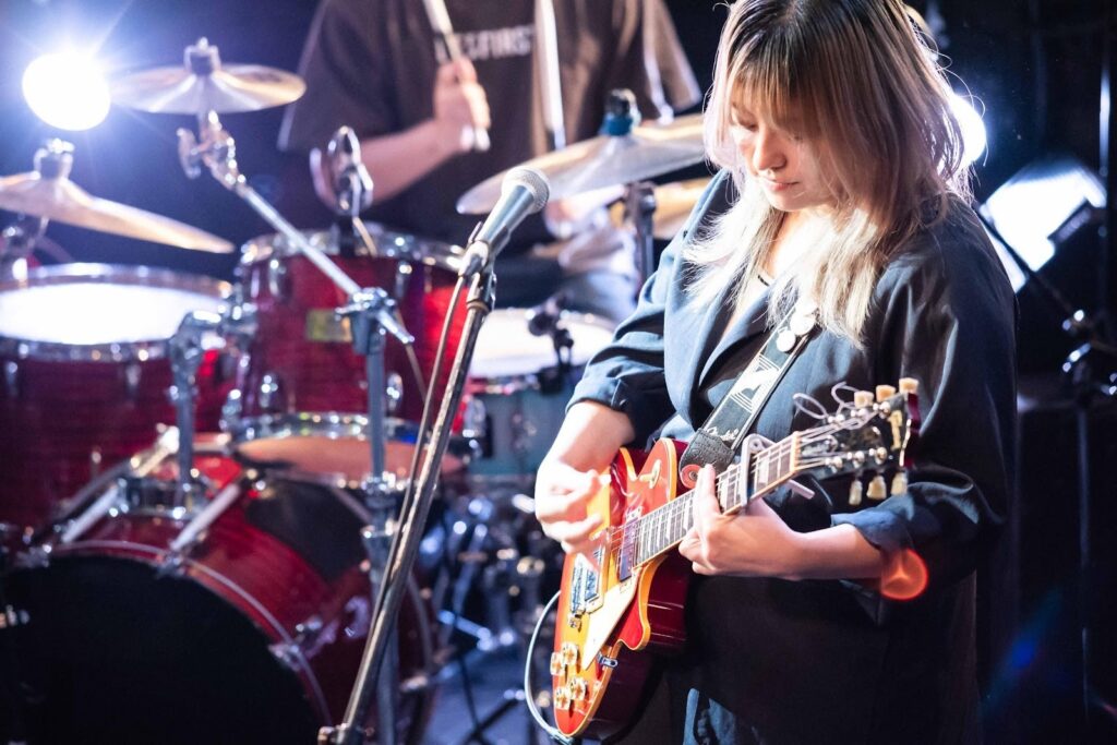歌詞に出てくるレモンサワーに合わせた黄色の照明が映える。サウンドからは炭酸の少し呆気ない刺激感も伝わった。『メランコリリック』はサビのキャッチーなリズムが秀逸、『rainy maybe』は、趣のあるサウンドとサビでのフクダとてざわりのマイクワークが新鮮で、普通にもっと知られていい曲だと思った。