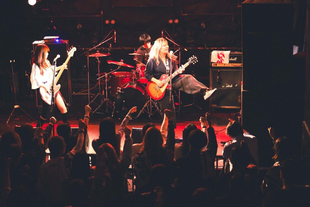 すっかり彼女達の代表曲となったが、その怨念熱量は変わらず、いやさらに増えているかのように<幸せになってんじゃねぇよ>と強く放っていく。この日は老若男女が集まっていたが、やはり女性のほうが楽しそうにノっていた。この後に続いたのは『拝啓、クソな私』。このどちらにも行き来する感情を、この2曲で上手く代弁した。