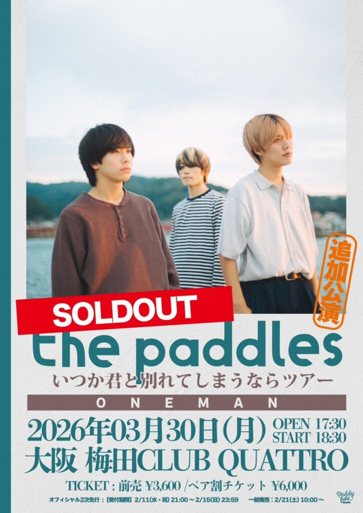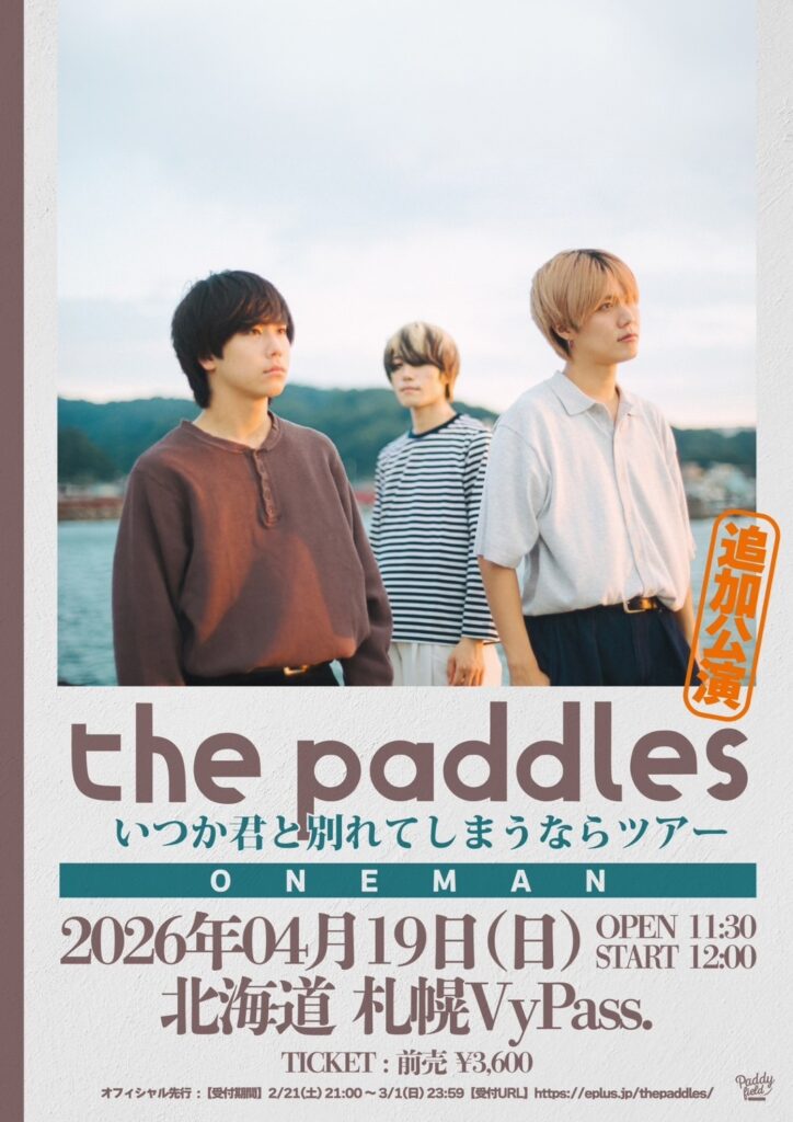 永遠が、絶対がないのなら、先延ばしにしたその日がくるまで、僕は何ができるのだろう。2026年2月18日(水)、フロム大阪のスリーピースバンド・the paddlesが、神奈川・F.A.D YOKOHAMAにて開催した『いつか君と別れてしまうならツアー』6本目。