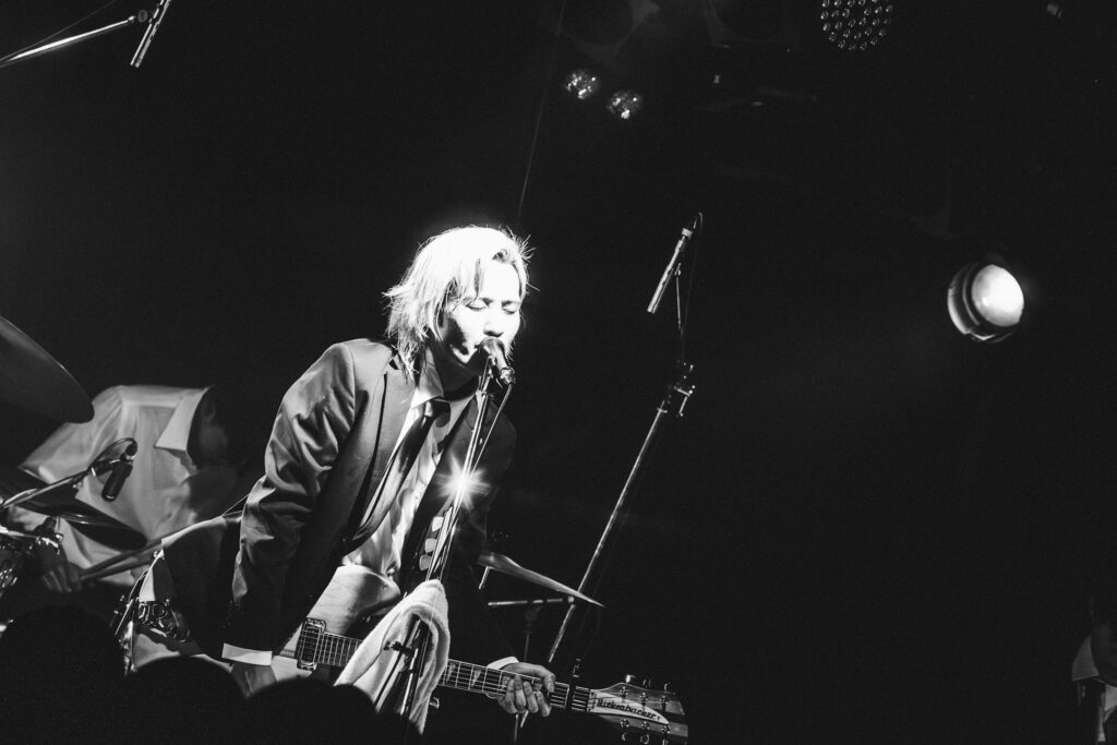 そして緑色の照明も映える『タイムトラベルメロン』が始まれば、全員で<ファックミーライフ>と歌って、少しコミカルなリズムも贅沢に楽しむ。まだ4曲だが日常に寄り添う愛おしい歌詞と多様で独特かつライブバンドの骨太なグルーヴを味わった。