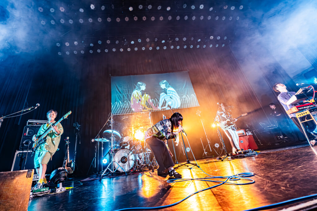 さながら年賀状や暑中見舞いのように毎年律儀に届けている作品集について、「1年に1枚アルバムを出すってことは、1年の記憶を渡すってことな気がします」「これを聴け!ってよりも、1年間こんな気持ちで過ごしましたって会話ができるように音源を作っていきたい」と語った折り返しブロック。レトロチックな音像を土台にハンドワイパーを発生させた『スペアミント』や、パイプオルガンにも類する響きを備えたキーボードとアコースティックギター的なシャラシャラとした手触りを湛えた三澤勝洸(Gt)のギターが矛盾した愛憎を投影した『泣き虫のコーダ』を連ねると、流麗なピアノの音が耳へと飛び込んでくる。